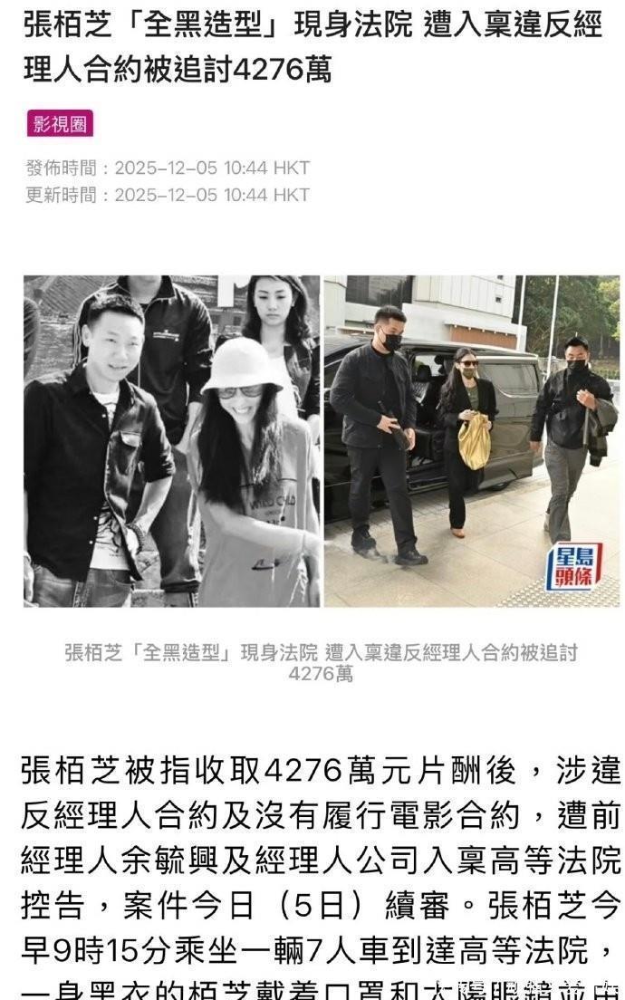 当天清晨8点半,张柏芝身着大衣,全程用墨镜、口罩严密遮挡面部,在助手陪同下现身法院门口,面对守候的媒体仅轻声回应“早安”,紧绷的身形难掩内心不安。进入庭外会议室等候时,她摘下遮挡物,侧脸满是焦虑,反复翻阅案件文件试图梳理关键信息,开庭前更是频频打哈欠、闭目养神,状态疲惫不堪,助手只能递上可乐帮她勉强提神,可见这场庭审对其身心消耗极大 。据悉,这场情绪爆发源于一桩横跨14年的合约纠纷。2011年,张柏芝与前经纪人余毓兴及其公司签订经纪合约,约定拍摄4部电影,后续补充协议增至6部,对方预先支付4000万港元(约合1.6亿新台币)巨额片酬。后因电影未能全部完成,余毓兴公司2013年倒闭清盘,张柏芝2014年发律师信终止合作,如今余毓兴将其告上法庭,索赔至少1276万港元并要求公开相关账目 。